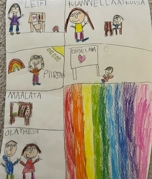 Ja saa tulla yöpuvussa ja tuoda viltin ja rakennetaan majoja ja leikkitunti ja saa tuoda jonkun kaverin kouluun."