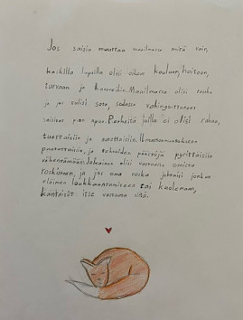 "Jos saisin muuttaa maailmassa mitä vain, kaikilla lapsilla olisi oikeus kouluun, hoitoon, turvaan ja kavereihin.